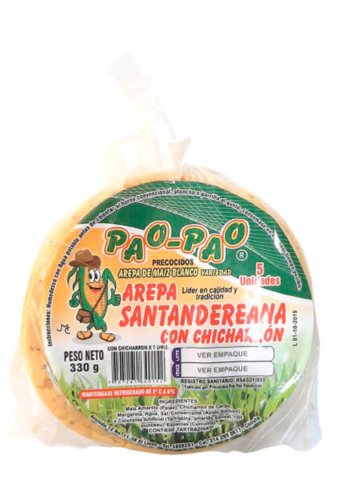 Arepa Santandereana Con Chicharrón Pao Pao X5